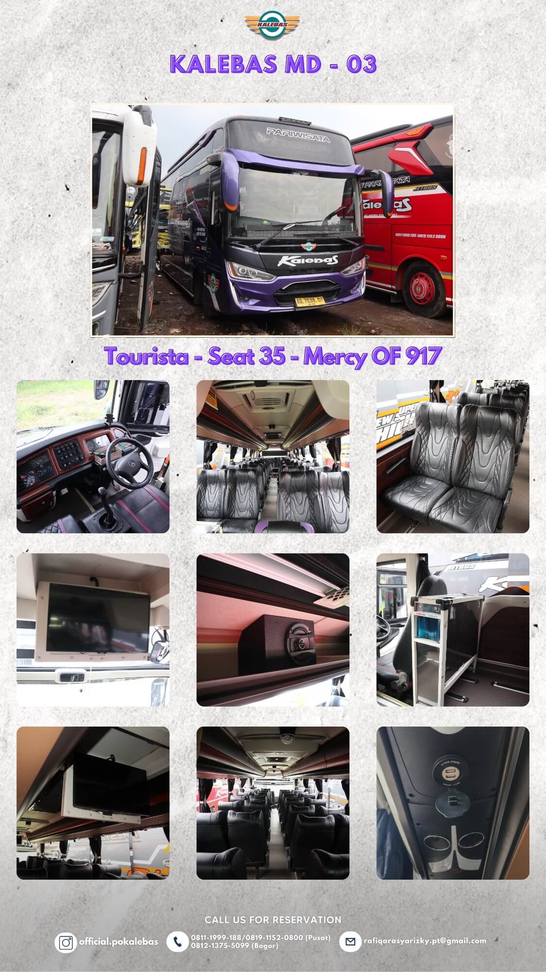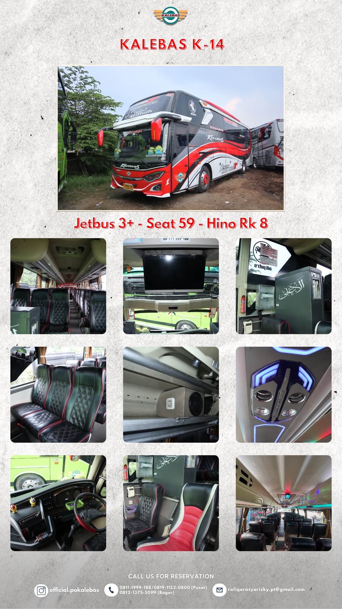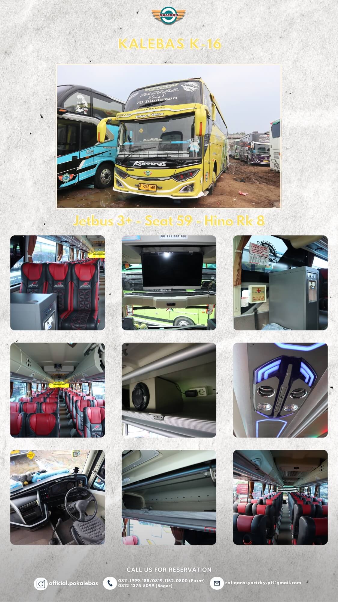 Setiap unit bus pariwisata PO Kalebas menjalani perawatan rutin dan pengecekan berkala guna menjamin standar keselamatan yang tinggi. Didukung oleh pengemudi berpengalaman serta kru profesional, kami berkomitmen memberikan pelayanan yang ramah, tepat waktu, dan responsif terhadap kebutuhan pelanggan.
