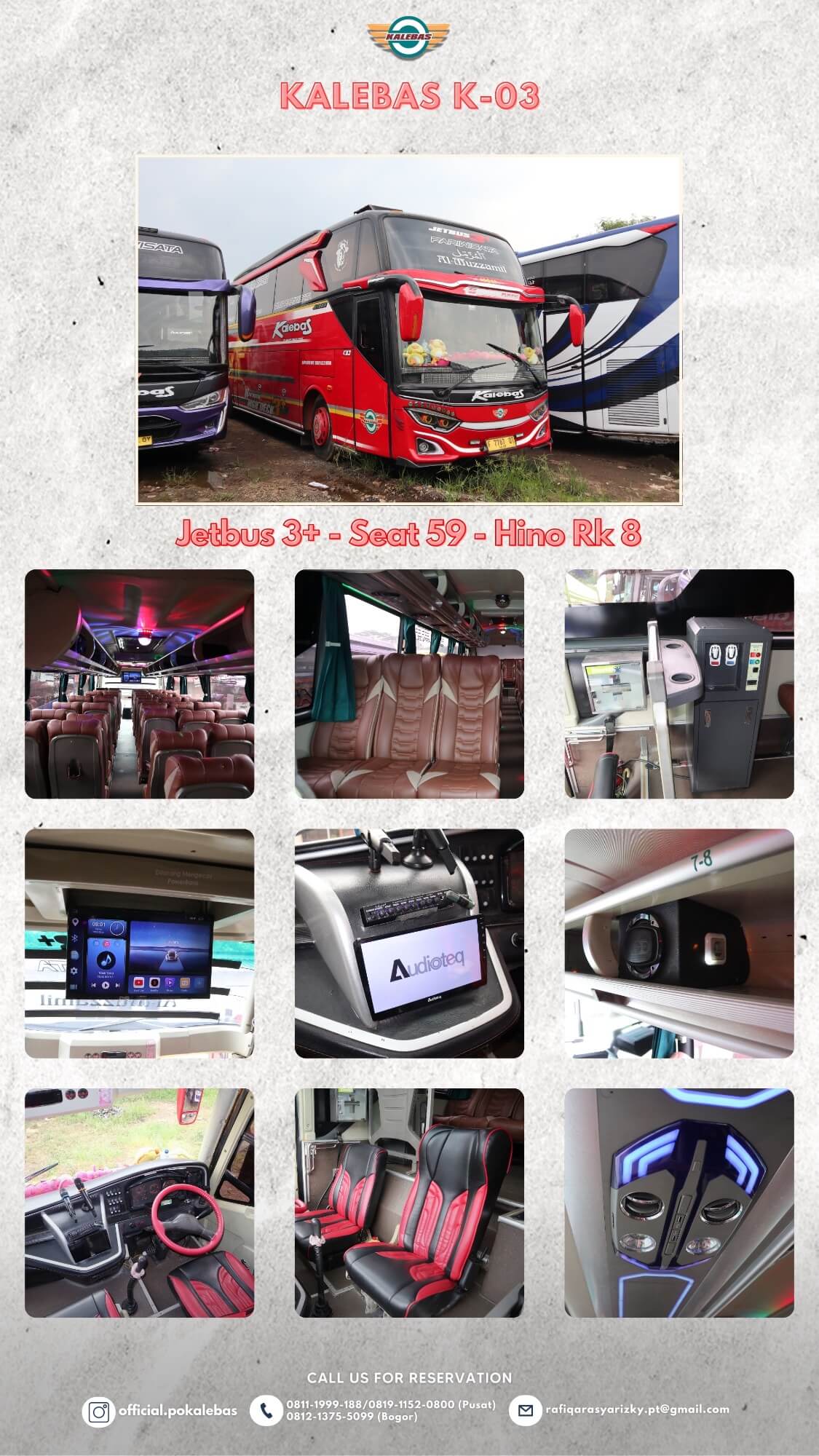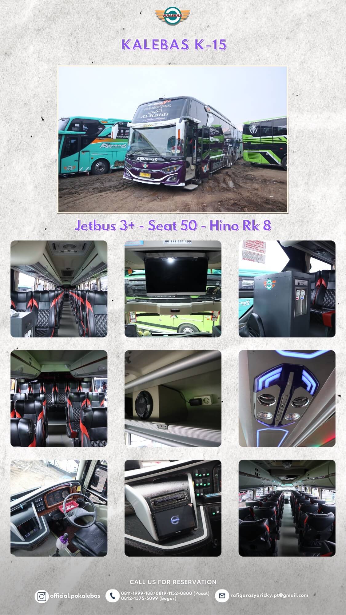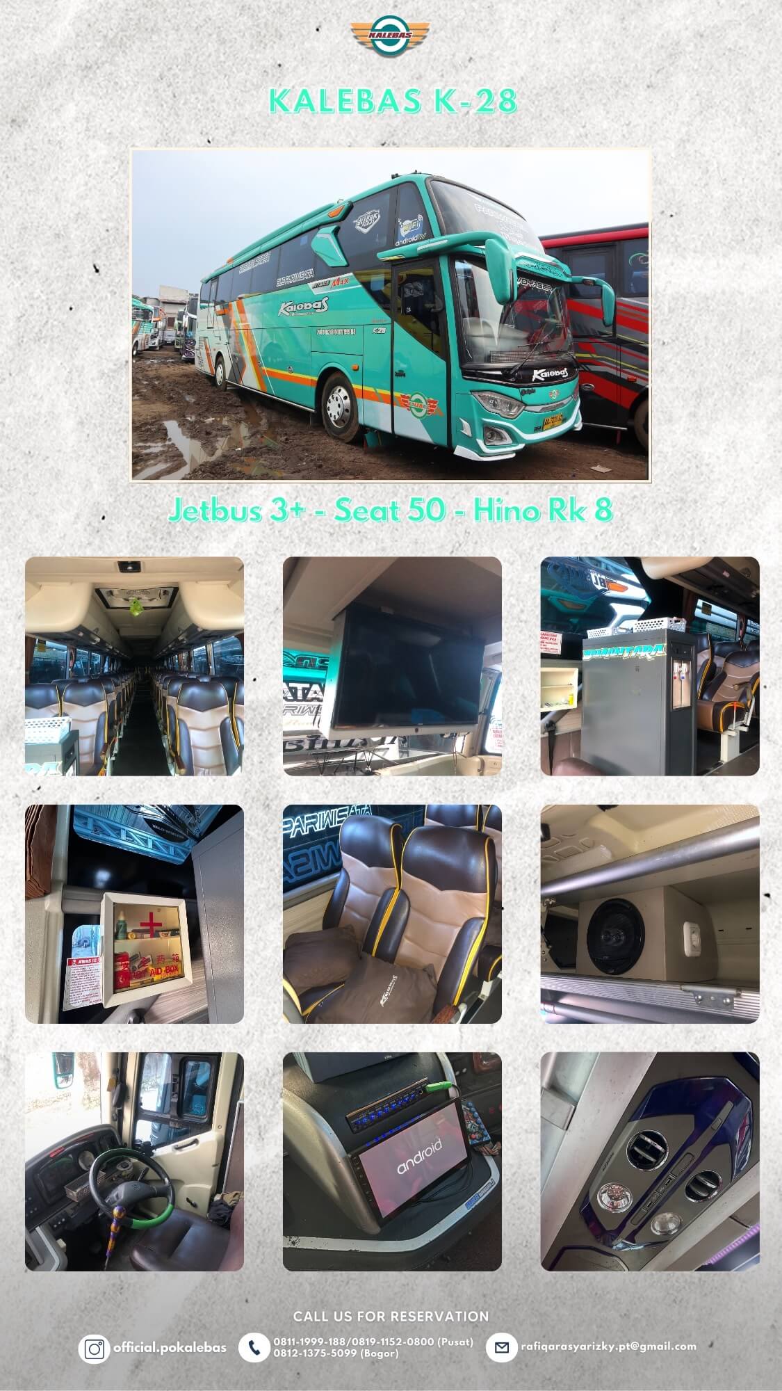 Setiap unit bus pariwisata PO Kalebas menjalani perawatan rutin dan pengecekan berkala guna menjamin standar keselamatan yang tinggi. Didukung oleh pengemudi berpengalaman serta kru profesional, kami berkomitmen memberikan pelayanan yang ramah, tepat waktu, dan responsif terhadap kebutuhan pelanggan.